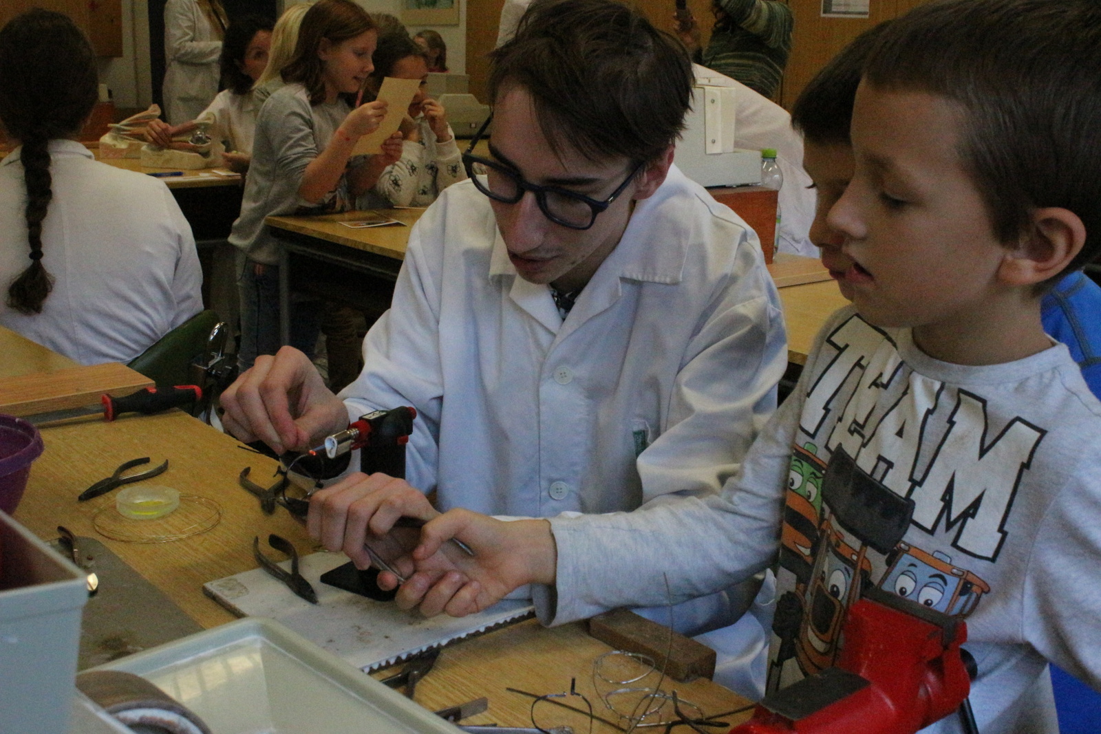 V rámci dne otevřených dveří 29. 11. 2018 se na oboru OČNÍ OPTIK uskutečnila akce „Aby očičko vidělo“. Na obor Oční optik přišli žáci druhé třídy ZŠ Krásného z Juliánova na odbornou „exkurzi“ a vyzkoušeli si, co činnost očního optika obnáší. Žáci ZŠ sami brousili brýlová skla na ručním brousícím stroji, skládali model oka, zjistili si, které oko mají vedoucí a pájeli kovovou brýlovou obrubu, vše pod pečlivým dohledem studentů druhého ročníku vyššího studia Diplomovaný oční optik. Žáčci se seznámili s prací odborníků - budoucích očních optiků a byli nadšeni a unešeni tímto oborem a ani se jim nechtělo odcházet.