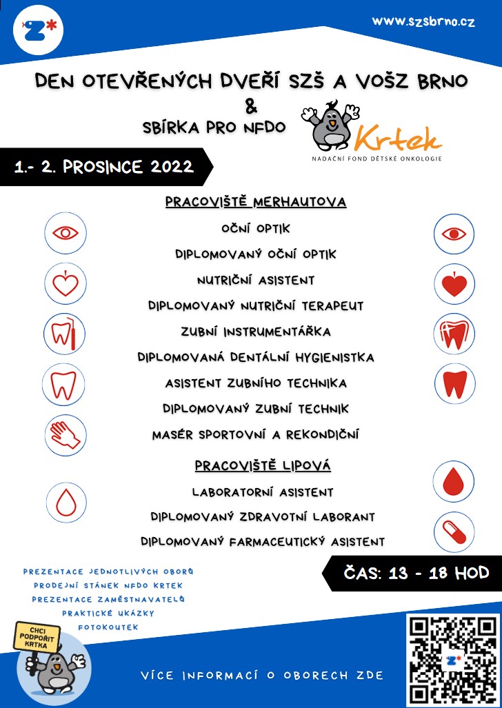 Zveme všechny zájemce o studium na střední i vyšší odborné škole na Dny otevřených dveří, které se budou konat čt 1. a pá 2. prosince 2022 vždy od 13 do 18 hodin na obou pracovištích.