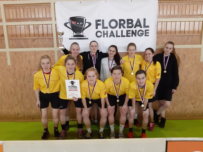 Florbalový turnaj KB Florbal Challenge je pořádán pro týmy žáku (ročníky 2001–3) ze škol celé republiky. Naše škola se ho účastní pravidelně v kategoriích chlapců i děvčat, vždy s úspěšným postupem minimálně z okresního kola. V letošním ročníku se podařil našim děvčatům neobyčejný počin, kdy po velmi vyrovnaných utkáních postoupila přes okresní, krajské i národní kolo (TOP 8 východ) až do celorepublikového finále. V neděli 14. 4. 2019 se tak utkaly s gymnáziem „Jergym girls“ z Liberce v Ostravar aréně v jediném utkání o absolutní titul. V úžasné atmosféře s naprosto profesionálně konaným pojetím utkání (nástupem na hrací plochu, komentátory, kamerami, vizuálními a zvukovými efekty, přesným itinerářem zápasů a vyhlášení vítězů – shodným s následujícím superfinále florbalové ligy žen a mužů) nastoupila naše děvčata proti několikanásobnému vítězi tohoto turnaje. Po herně vyrovnané první polovině utkání se projevila početní převaha střídajících hráček soupeře. Přestože se nakonec z vítězství radoval soupeř, zanechala naše děvčata nesmazatelnou stopu v historii tohoto turnaje, na což mohou být po právu hrdé.